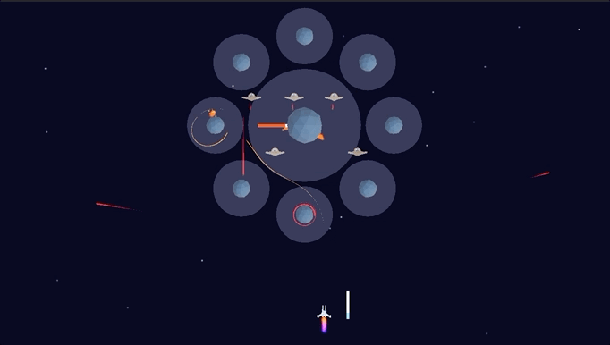 A top-down shooter where you should count on space object gravitation while shooting enemies and dodging their attacks